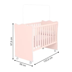 O berço é feito em MDP 15mm. Não acompanha colchão (comporta colchão de 10x130x60). Acompanha kit de rodízios para facilitar o manuseio do produto
