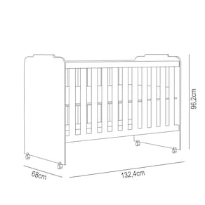 Características do Produto Material da estrutura: MDF/MDP 12mm/25mm. Acabamento: Pintura UV. Escala de brilho: Brilho. Possui Grade Móvel: Não. Peso Suportado: 25 Kg. Acompanha Colchão: Não. Medidas de Colchão: 130x60cm. Possui Rodízios: Sim. Registro Inmetro: 002391-2023. Órgão Responsável pela Testagem: OCP 0033. Diferenciais: - Design moderno. - Com rodízios. - Acompanha suporte para mosqueteiro. Sistema de Montagem: Minifix/Cavilhas/Parafusos. Manual de Montagem: Sim. Complexidade da Montagem: Média. Conteúdo da Embalagem: 1 Berço. Volumes: 2 Volumes. Garantia do Fabricante: 90 dias contra defeitos de fabricação. Montagem: Recomendamos que seja feita por um profissional. Recomendação de limpeza: Utilize pano levemente úmido.