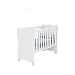 Características Possui certificação compulsória de acordo com as portarias do Inmetro Nº Registro Inmetro: 001 881/2020 panfletos tabloides e outras mídias comerciais. Demais regras e atualizações vide Berço padrão nacional: -60cm- Estrado em MDF com chapas de 6mm Travessas do estrado em MDF com chapas de 25mm Grade em MDF com pintura atóxica e livre de materiais pesados Produto com três regulagens de altura do estrado: 1a: 360 milímetros, 2a: 488 milímetros, 3a: 616 milímetros -altura do estrado em relação a borda superior da grade-. Possibilita que conforme o crescimento do bebê, mais profundo fica o berço Altura do chão até a base -variação de acordo com o posicionamento do estrado-: 1a: 540 milímetros, 2a: 412 milímetros, 3a 284 milímetros Acabamento revestido em pintura UV Acompanha suporte para mosquiteiro Acompanha kit de rodízios -2 c/travas e 2 s/travas-, que garantem ao produto mais mobilidade e segurança Indicação de colchão : 60x130cm