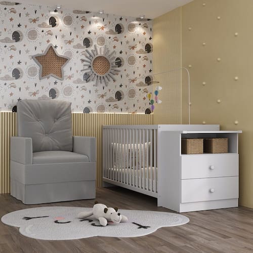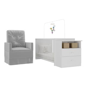 Berço Cômoda com Colchão Incluso e Poltrona de Amamentação Meu Bebê Multimóveis MP4090 Branco/Cinza