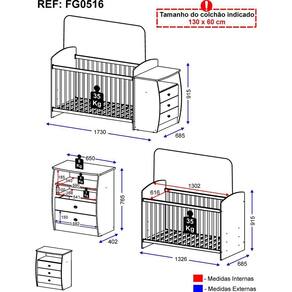 - Dimensões recomendadas para o colchão do berço: 130 cm x 60 cm