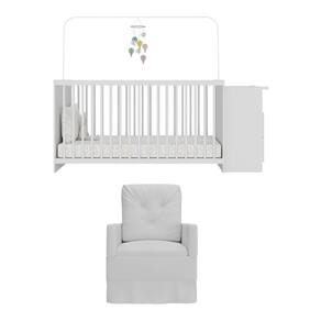 Berço Cômoda Com Colchão Incluso E Poltrona De Amamentação Meu Bebê Multimóveis Mp4096 Branco Branco O Berço Cômoda com Colchão Incluso e Poltrona de Amamentação Meu Bebê Multimóveis MP4096 foi criado para complementar o quartinho, facilitando a vida da mamãe nos preparativos para a chegada do bebê. O berço é padrão nacional (tamanho do colchão 130cm x 60cm), produzido em MDP com acabamento acetinado (cerca de 20% de brilho), que garante maior durabilidade e facilidade na limpeza. A cômoda acoplada (não é possível montar separadamente) possui 2 gavetas espaçosas com corrediças metálicas, que proporcionam mais leveza no manuseio e um nicho para deixar o quartinho organizado. O lastro possui 3 regulagens de altura para o colchão e acompanha suporte para mosquiteiro, que garante noites mais tranquilas de sono. Berço Certificado pelo INMETRO sob o Selo n 012251/2022. O Colchão D18 (suporta 50kg), que acompanha o berço, é produzido 100% em tecido poliéster com preenchimento em espuma. Possui tratamento anti-ácaro e anti-alérgico e é indicado para crianças de até 3 anos. A poltrona de amamentação é produzida em madeira de eucalipto, com revestimento em material sintético, molas reforçadas e mecanismo de balanço, proporcionando muito aconchego. Capaz de suportar 110kg, o assento possui densidade D23, que garante maior conforto e durabilidade. Conteúdo da Embalagem: 1 (um) Berço 1 (um) Colchão 1 (uma) Poltrona Kit Ferragem Manual de Montagem