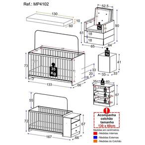 O produto será entregue desmontado e não disponibilizamos o serviço de montagem. Acabamento: Pintura UV | Tonalidade: Branco | Material: MDP | Referência do Modelo: MP4102 | Coleção: Meu Bebê | Instruções de Cuidado: Limpar com pano seco para retirar o pó. Não utilizar produtos químicos ou abrasivos a limpeza. Não aplicar lustra móveis. | Peso Suportado: 35 kg | Produto Composto Por: 1 Berço, 1 Colchão, 1 Poltrona, 1 Puff, Manual de Montagem e Kit Ferragem. | Sistema de Montagem: O produto acompanha manual de montagem juntamente com kit ferragem. O produto será entregue desmontado e não disponibilizamos o serviço de montagem. | Altura Montado: 90 | Largura Montado: 166 | Profundidade Montado: 68 | Tamanho (L x A x P): 166 x 90 x 68 | Peso do Produto: 51 | Acompanha Colchão: Sim | Vira Cama: Não | Tamanho Colchão: 60 x 130 cm | Com gaveteiro: Sim | Idade Mínima: 0 anos | Idade Máxima: 3 anos | Possui Rodízio: Não | Portátil: Não | Produto: Berço | RBN: 17352336011 | Requer Montagem: Sim | Fabricante: Multimóveis | Garantia do Fabricante: 3 | Registro INMETRO: 012251/2022 | Altura (cm): 90 cm | Largura (cm): 166 cm | Profundidade (cm): 68 cm | Tipos de Madeira: N/A | Regulamentado pelo INMETRO: Sim | Altura do Produto com Embalagem: 117 | Largura do Produto com Embalagem: 74 | Comprimento do Produto com Embalagem: 137 | Peso do Produto com Embalagem: 51 | Estado de Origem: RS | Nome do Produto no Fornecedor: Berço Cômoda com Colchão, Poltrona de Amamentação e Puff Meu Bebê Multimóveis MP4102 Branco/Bege | Produto precisa de Montagem?: Sim, sugerimos a contratação do nosso serviço de montagem (para os CEPs em que o serviço está disponível) ou de algum profissional experiente de sua preferência | Descrição do Tamanho: (L x A x P): 166 x 90 x 68 cm | Tempo de Garantia: 3 meses | Destaque 1: Berço produzido em MDP: maior durabilidade e resistência. Certificado pelo INMETRO. | Destaque 2: Berço cômoda com colchão incluso. | Destaque 3: Poltrona com balanço e revestimento em tecido. Suporta até 110kg. | Destaque 4: Puff para descanso das pernas e dos pés. | Destaque 5: 90 dias de garantia legal para vícios ou defeitos de fabricação. | Tipo de Berço: Multifuncional | Quantidade de posições: 3 | Com muda-fraldas: Não | Com função co-sleeping: Não | Com grade removível: Não | Peso (kg): 50,2 kg | Idade recomendada: 0-24 meses Cor: Branco/Bege