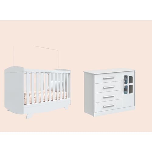 Acompanha suporte de cortinado e possui a opção de transformação em minicama e minissofá.