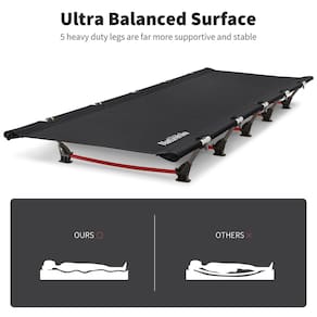 Berço de acampamento Naturehike GreenWild, berço de mochila dobrável ultraleve, suporta 330 libras, cama de acampamento portátil para adultos para acampar, caminhar e viajar para casa, preta -?Resistente e estável?Com liga de alumínio 7075 de grau aeronáutico, 67% mais forte e 75% mais leve que a estrutura de berço comum. Além disso, 5 pernas pesadas são muito mais favoráveis e estáveis do que um berço de 3 pernas. É resistente o suficiente para suportar no máximo 330 libras, mantendo a cama plana e evitando que afunde -?Ultraleve e portátil?Pesa apenas 4,8 libras e se dobra em uma bolsa de transporte de 18 x 6,3 polegadas, para que você possa carregar facilmente este berço aonde quer que vá. Basta amarrá-lo na parte externa da mochila ou colocá-lo no carro, caminhão ou trailer. Comece uma viagem leve agora e diga adeus aos equipamentos com excesso de peso -?Dormir confortável?Possui lençol de berço de tecido Oxford 300D respirável e resistente a rasgos, bloqueando a umidade e o frio à noite, reduzindo a perda de calor e eliminando o desconforto de dormir em terrenos acidentados. O tecido também é antiestático, o que dificulta a aderência do ar e da poeira do solo ao berço -?Configuração e remoção dos anos 60?Basta inserir 2 postes de apoio longos nas 2 mangas do lençol e travar as 5 pernas de apoio. O tubo do cabo de choque tornará a configuração e a desmontagem muito simples. Em 60 segundos, você pode arrumar seu berço de acampamento e desfrutar do conforto -?Design detalhado atencioso?Os estabilizadores antiderrapantes nas pernas ajudam a manter o berço plano e estável em terrenos irregulares. Além disso, mover o berço não fará um barulho irritante que perturbe você e outras pessoas que dormem. Equipamento ideal para caminhadas, camping, mochilão, praia, uso doméstico e no escritório