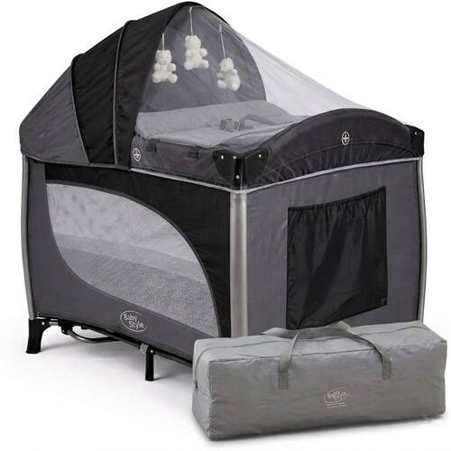 Especificações Técnicas: Material: Poliéster (tecido), Ferro (estrutura) e PP (partes plásticas). Dimensões: 86cm (altura) x 83cm x (largura) x 105cm (comprimento) Tipo: Berço Portátil (Tipo 1). Sistema de Montagem: Manual (Sem necessidade de ferramentas). Acessórios Inclusos: Barra de balanço, móbile, capota com mosquiteiro, colchão e bolsa de transporte. Ref.: 445501 Marca: Baby Style