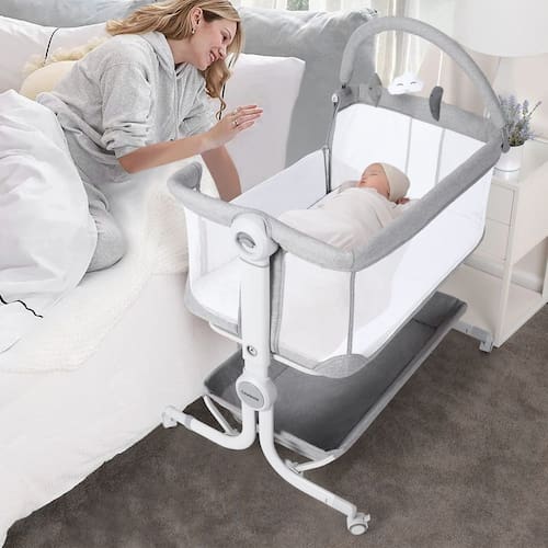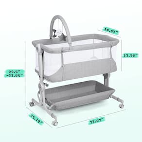 - Design atualizado: o berço pode ser facilmente montado e desmontado para montagem sem ferramentas. O berço tem uma grande cesta de armazenamento embaixo e brinquedos pendurados acima, para que você possa acessar facilmente todos os itens essenciais do bebê e interagir melhor com seu bebê. O design exclusivo do suporte permite que o suporte de roda seja empurrado para a cama da mãe para um contato mais próximo entre pais e filhos.