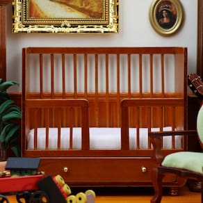 Material: bétula, madeira compensada Peso: 150 g Tamanho: 11 cm x 5,9 cm x 9,9 cm Design clássico de berço: um berço de madeira lindamente feito com ripas verticais e uma gaveta, perfeito para cenas de berçário de bonecas ou quartos de crianças. Construção de qualidade: feito de bétula e madeira compensada duráveis, com bordas lisas e acabamento natural, este berço em miniatura oferece uma aparência realista para qualquer casa de bonecas. Compatibilidade de balanças: Projetado para casas de bonecas em escala 1:12, minicasas e conjuntos de brinquedos de teatro, ideal para adicionar acessórios detalhados ao seu berçário em miniatura. Nota de segurança importante: Brinquedo não infantil, evite riscos de asfixia ou ferimentos. Este é apenas um modelo de brinquedo e não é adequado para uso na vida real. Valor da brincadeira de fingir: aprimora a criatividade e a criatividade imaginativas das crianças, oferecendo uma excelente adição à brincadeira de fingir ou à configuração de casa de bonecas de seu filho.