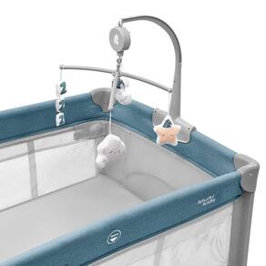 A experiência fica ainda mais completa com o móbile com brinquedos e a caixa de música não elétrica, que contribuem para um ambiente calmo e acolhedor na hora do sono. O mosquiteiro em formato de capota ajuda a manter o bebê protegido, enquanto a entrada lateral com zíper torna o uso mais versátil conforme a criança cresce.