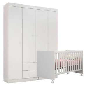 Berço Doce Sonho e Guarda Roupa Infantil Helena Branco Brilho - Phoenix