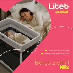 A linha de bercos da Litet foi desenvolvida para oferecer tranquilidade aos pais e maximo bem-estar aos pequenos. O Berco e Cercado Nix e a solucao ideal para quem busca um produto funcional, leve e facil de transportar, perfeito tanto para o uso diario quanto para viagens curtas ou longas.