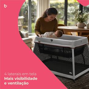 Com design compacto e estrutura leve, o Nix acompanha uma bolsa exclusiva que facilita o transporte e o armazenamento. Seu formato retangular, com laterais em tecido telado, garante excelente ventilacao e ampla visibilidade, permitindo que voce acompanhe o bebe com mais seguranca e conforto.