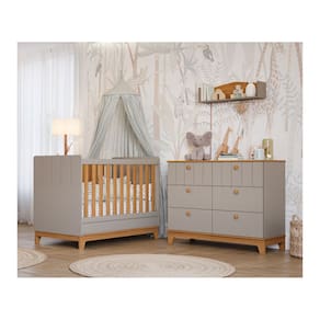 Berço padrão americano fabricado em MDF, com 02 regulagens na altura do estrado, grades fixas, detalhes em baixo relevo com pintura Laca;