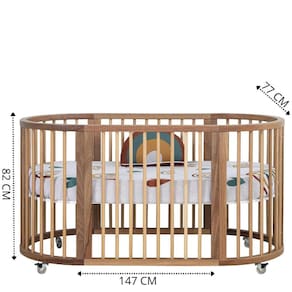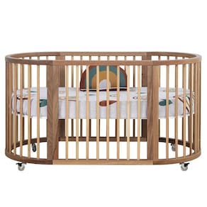 Berço Evolutivo em Madeira Maciça Crescer Incolor. Fabricado 100% em madeira maciça, o berço oferece 04 opções de uso - mini berço (1), berço (2), mini cama (30) e poltronas (4), 04 regulagens de altura de estrado e rodízios de silicone para facilitar a movimentação do berço. Recomendações de Uso, Manutenção e Limpeza: A limpeza rotineira deve ser feita com pano de algodão seco ou levemente umedecido. Em casos de manchas, utilize uma esponja fina, não abrasiva com detergente neutro e uma flanela para secar. Não utilize buchas ou produtos ásperos para limpeza. Não usar substâncias com álcool, amoníaco, abrasivos e similares. Marca: Miio Móveis