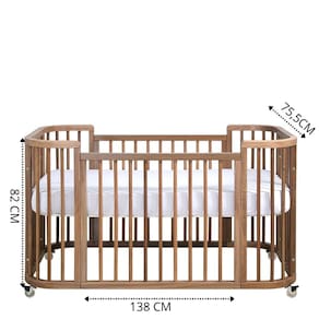 Um berço fabricado 100% em Madeira Maciça de fácil montagem, possui suas cabeceiras curvas com cantos arredondados e laterais gradeadas! O berço SLEEP oferece 3 possibilidades de uso: MINI BERÇO, BERÇO e MINI CAMA. Com 04 configurações de altura do colchão, o modelo se adapta à medida que a criança cresce! Acabamento: Laca Acompanha Cama Auxiliar: Não Acompanha Dossel: Não Acompanha Móbile: Não Acompanha Suporte para Mosquiteiro: Não Altura: 82 cm Altura do Estrado até o Chão: 42 cm Ambiente Principal: Quarto de Bebê Certificado: 004777/2020 Complexidade da Montagem: Baixa: pode ser montado por uma pessoa sozinha Cor: Incolor Cor do Produto: Incolor Escala de Brilho: Fosco Estilo: Moderno Estrado com Regulagem de Altura: Sim Estrado Regulável em Quantas Posições: 04 Itens Inclusos: 1 Berço com 1 Colchão para a Fase Mini Berço e Manual de Montagem Largura: 138 cm Manual de Montagem e Instalação: https://product-hub-prd.madeiramadeira.com.br/903423/documents/65cc66b5-ba68-4e08-b25a-bb18f2f857e31898719SLEEP400.pdf Material da Grade: Madeira Maciça Material do Estrado: MDF Material Principal: Madeira Maciça Multifunção Flex: Não Necessita Montagem: Sim Opções de Altura do Estrado: 04 Origem do Produto: Nacional Permite a Utilização de Cama Auxiliar: Não Peso: 28 kg Pintura Atóxica: Sim Portátil: Não Possui Gavetas: Não Possui Pés: Não Possui Portas: Não Possui Prateleiras: Não Profundidade: 75,5 cm Recomendações de Uso, Manutenção e Limpeza: A limpeza rotineira deve ser feita com pano de algodão seco ou levemente umedecido. Em casos de manchas, utilize uma esponja fina, não abrasiva com detergente neutro e uma flanela para secar. Não utilize buchas ou produtos ásperos para limpeza. Não usar substâncias com álcool, amoníaco, abrasivos e similares. Sistema Anti-Refluxo: Não Sistema de Montagem: parafusos e buchas Suporta Até (kg): 40 kg Tamanho do Colchão Indicado (L x C): 70cm x 130cm Tipo de Berço: Berço Multifuncional Tipo de Estrado: Removível Tipo de Grade: Fixa Tipo de Madeira Maciça: Jequitibá Marca: Miio Móveis