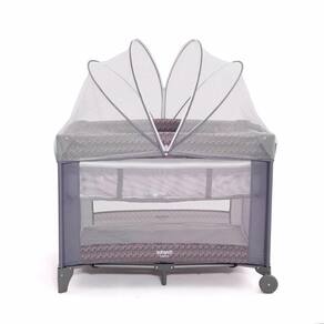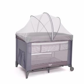 Portátil e desmontável com bolsa de transporte, 2 alturas, bolso lateral e mosquiteiro elevado, com abertura central pelo zíper, fácil acesso sempre que precisar.