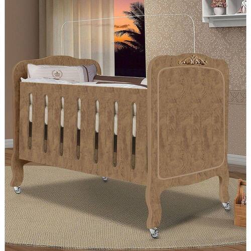 O Berço Imperial realça o estilo provençal. Sua estrutura é em MDF, possui 4 rodízios em gel sendo 2 com trava, 3 regulagens no estrado, transforma-se em sofá cama e com detalhes em arabescos.
