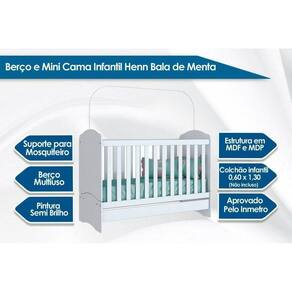 Abaixo segue os produtos do KIT: Berço / Mini Cama Infantil Bala de Menta 3 em 1 (2 Un) Rústico/Branco - Henn