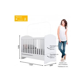 Material de Estrutura - MDF/MDP Estilo do Móvel - Moderno Tipo de Pintura - Ultravioleta Tipo de Acabamento da Pintura - Atóxica Tipo de Acabamento - Acabamento Interno Branco Material do Estrado - Estrado de Madeira Reflorestada Tamanho de colchão para usar no berço - 60x130 Diferenciais dos Móveis Infantis - Suporte p/ Mosquiteiro - Berço Multiuso - Grade de Segurança - Grades Removíveis