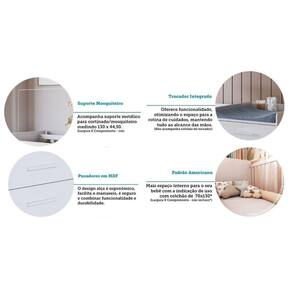 Material de Estrutura - MDF Estilo do Móvel - Clássico Tipo de Pintura - Ultravioleta Tipo de Acabamento da Pintura - Atóxica Tipo de Cama - Cama Infantil Material do Estrado - Estrado de Madeira Tamanho da Cama - Infantil Tamanho de colchão para usar no berço - 70x130 Diferenciais dos Móveis Infantis - Suporte p/ Mosquiteiro - Berço Multiuso - Grade de - Grades Removíveis - Sim