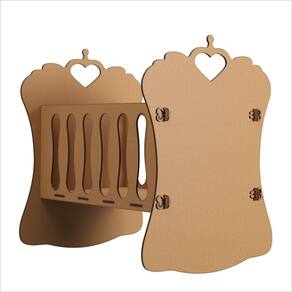 Laterais decoradas com presilhas desenhadas em MDF, proporcionando um toque sofisticado e artesanal.
