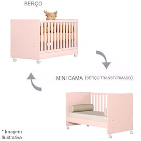 O Berço Mini-Cama Docinho foi projetado especialmente para oferecer conforto e segurança ao bebê. Com um design clássico e delicado, ele garante beleza e aconchego para o ambiente. O berço acompanha suporte para mosquiteiro, que proporciona noites mais tranquilas e seguras. A diferença entre o berço tradicional e o Berço Mini-Cama é que o Berço Mini Cama pode ser remontado como uma cama para a criança. O estrado é colocado mais baixo, algumas peças mudam de lugar e pronto, temos uma caminha nas mesmas dimensões do berço. Esse produto deixa os pais mais tranquilos na fase de transição do berço para a cama, já que não vão precisar trocar toda mobília de uma só vez. A idade da criança vai depender do modelo do berço e do tamanho da criança, mas a idade média indicada é até os 3 anos.