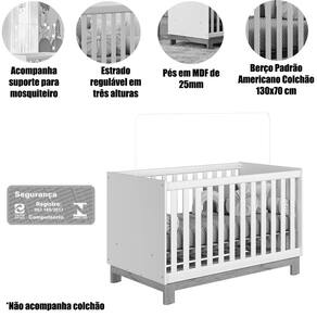 • Informações Adicionais: Não acompanha colchão; Medida recomendada para o colchão de 70x130 cm