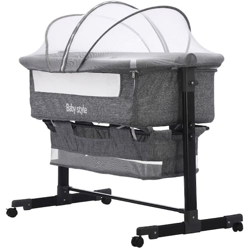 Características Técnicas Estrutura: Metal com pintura epóxi e acabamento em tecido resistente Laterais: Tecido em tela respirável para melhor circulação de ar Abertura lateral com zíper para uso prático como co-sleeper Modo balanço: Movimento suave que acalma o bebê Modo anti-refluxo: Inclinação ajustável para maior conforto Altura ajustável: Diferentes níveis que se adaptam à cama dos pais Segurança: Sistema de fixação para uso como co-sleeper Mobilidade: 4 rodízios com travas para fácil deslocamento Mosquiteiro incluso com fechamento em zíper Cesto inferior: Espaço prático para armazenamento Peso suportado: Até 10kg Dimensão do Produto: 98cm (comprimento) x 82cm (altura) x 60cm (largura) Peso do produto: 8kg Marca: Baby Style Ref.: 800801