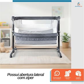 Sua estrutura firme com laterais em tecido respirável garante ventilação adequada e segurança. Possui ainda modo balanço, que oferece um movimento suave para acalmar o bebê, e a opção de modo anti-refluxo, com leve inclinação para maior conforto e saúde. A abertura lateral com zíper possibilita o uso na função co-sleeper de forma prática e segura. O dossel com mosquiteiro incluso protege contra insetos, enquanto os rodízios com travas facilitam a movimentação entre os ambientes da casa.