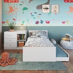 O Berço Cama Multifuncional com Auxiliar da Completa Móveis é versátil, prático e elegante. Com características que o destacam e o torna multifuncional, inicialmente pode ser utilizado como berço integrado com cômoda e trocador na parte lateral. Após o passar do tempo, pode ser desmembrado e utilizado como cama de solteiro e a cômoda avulsa ou mesa de cabeceira. Com cama auxiliar possibilitando mais um opcional extra pra dormir!