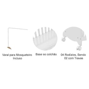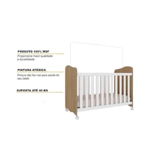 Material de Estrutura - MDF Tipo de Pintura - Ultravioleta Tipo de Acabamento da Pintura - Semi Brilho Material do Estrado - Estrado Regulável Tamanho de colchão para usar no berço - 70x130 Diferenciais dos Móveis Infantis - Suporte p/ Mosquiteiro - Grade de