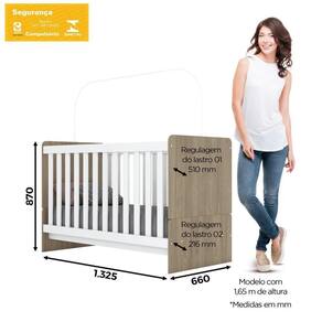 Berço Labirinto Rústico/Branco. O Berço Labirinto, certificado pelo Inmetro, é perfeito para acompanhar o crescimento da criança. Com uma estrutura resistente de MDF, o móvel possui A: 87 x L: 132 x P: 66 Cm, ele é ideal para colchão de 1,30 x 0,70 m. O design do berço ganha destaque pela suavidade de tons, que agregam amplitude ao quarto, criando um efeito harmonioso e clean! Aproveite para dar uma olhada em outros módulos da linha Infantil Labirinto e monte o quartinho ideal para o seu bebê! Ean: 7909903333044