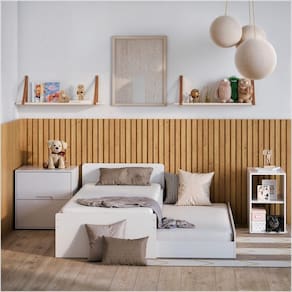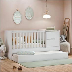 Multifuncional: transforma-se em mini cama, cama auxiliar, escrivaninha, mini cômoda e nicho;