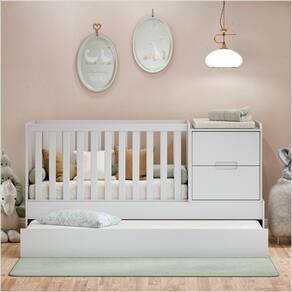 Berço Laqueado Formare 100% MDF com Gavetas e Nicho Branco Soft Matic Móveis