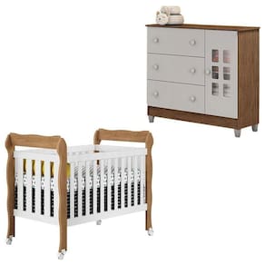 Berço Lila e Cômoda Mariah Branco Acetinado Amadeirado - Carolina
