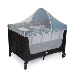 A capota tem alças para prender os brinquedos preferidos do bebê e poder ser removida, acompanha também um mosquiteiro com arco para manter-se elevado. Inclui ainda, trocador removível e reposicionável com cinto de segurança, rodas com freio, amplo bolso porta-objetos, laterais com tela, colchonete macio que tem fixação lateral com zíper, mais segura.