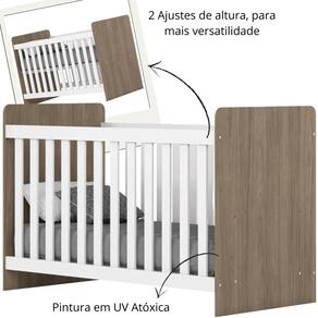 Com duas posições de estrado, você ajusta a altura ideal para cada fase do bebê. A grade fixa e o espaçamento seguro entre as barras garantem noites tranquilas de sono.