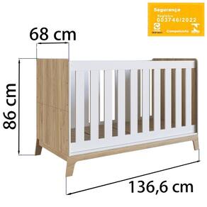 Berço Mini Cama 3 Em 1 Com Colchao FM011 certificado pelo INMETRO n 003746/2022, é versátil, prático e elegante, design moderno e características que o destacam. Estrutura em MDP de 15 mm, e excelente acabamento em Finish Foil (Fosco). Composto por estrado em MDF de 6 mm com altura regulável em três opções: 1: 21 cm 2: 35 cm e 3: 49 cm, grades em MDF com espaço entre as barras de 5,5 cm em MDF, acompanha suporte de mosquiteiro. Pode ser montado como berço, cama e mini cama. O Colchao Infantil BB863 certificado pelo INMETRO n 165171/22, traz o melhor em conforto, segurança e beleza, possui a qualidade que você procurava para sono do seu bebê. Produzido em espuma 100% poliuretano com densidade D18, o que significa que ele é macio e os pequenos vão ter ótimas noites de sono. Tecido lateral tem um dos tampos em Poliéster e o outro tampo do colchão é em Plavinil que inibe a de líquidos na espuma aumentando assim a vida útil do produto. Possui tratamento de higienização que impede a formação e colonização de ácaros, fungos e bactérias. Beuporta até 30 kg distribuídos. Este móvel chegará em sua casa separado em 02 volumes.