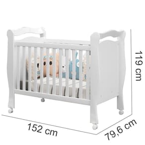 Descrição: O Berço J&A Móveis Alvin de padrão americano, produzido sob rigorosos testes de segurança inspecionados pelo INMETRO, confeccionado com material de primeira qualidade 100% MDF, pintura ultravioleta com tinta branca sem toxinas tudo para trazer conforto, qualidade e segurança. Além de possuir 3 regulagens de altura o Berço Alvin poderá ser transformado em minicama, já que o tempo passa muito rápido e logo a criança já pode se acomodar em uma cama sem ter um custo adicional. Informações técnicas