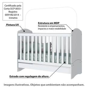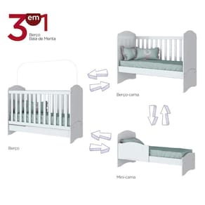 O Berço mini cama Bala de Menta traz todo o conforto e a segurança que seu bebê precisa para dormir tranquilo. Produzido em MDP, sustentação com revestimento interno e externo em pintura UV, o que assegura durabilidade ao móvel. O estrado tem regulagem de altura, uma função extremamente útil e segura, pois acompanha o crescimento da criança. Por transformar em mini cama, você tem 3 móveis em 1, acompanhando todas as fases do seu filho. Certificado e aprovado pelo Inmetro.