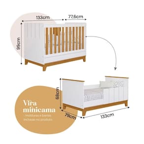 Produzido em MDF, conta com pés fixos, regulagem de altura em 2 posições e já vem com colchão infantil D18 revestido em poliéster.