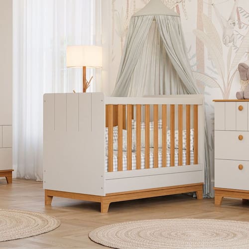 Esse berço remete ao lúdico e deixará o quartinho dos pequenos ainda mais lindo. Os pés torneados são de madeira e proporcionam ainda mais charme ao produto. Fabricado com matéria-prima 100% MDF, um material ecologicamente correto e de ótima durabilidade e resistência. É um produto sinônimo de SEGURANÇA, pois é fabricado conforme as normas exigidas pela ABNT e certificado pelo INMETRO (Certificação Compulsória de segurança INMETRO). A base do produto é inteiriça, o que proporciona maior resistência e estabilidade. O estrado é fabricado com barrotes de madeira e base de MDF 6cm. As ferragens para sua fixação ficam ocultas e assim a cabeceira não fica cheia de furos e parafusos aparentes. Acabamento: PU Acabamento dos Pés: Pintura Acompanha Cama Auxiliar: Não Acompanha Dossel: Não Acompanha Móbile: Não Acompanha Suporte para Mosquiteiro: Não Altura: 99 cm Altura do Estrado até o Chão: 41,6 cm Altura dos Pés: 10 cm Ambiente Principal: Quarto de Bebê Berço 3 em 1: Sim Certificação Inmetro (Código): 0031612024 Certificado: 003161/2024 Complexidade da Montagem: Média: pode ser montado por mais de uma pessoa e/ou necessite de maior conhecimento para montagem Cor: Off White / Marrom Cor do Produto: Off White / Marrom Cor Flex: NÃO Escala de Brilho: Acetinado Espaço Entre as Barras das Grades: 10 cm Estilo: Moderno Estrado com Regulagem de Altura: Sim Estrado Regulável em Quantas Posições: 02 Itens Inclusos: 1 Berço + 1 Kit Ferragens + 1 Manual De Montagem Largura: 133 cm Linha ou Coleção: BABY Manual de Montagem e Instalação: https://product-hub-prd.madeiramadeira.com.br/973776/documents/4d7d7592-c404-4ac9-8d45-7d80cdc2e6a82623706593517364420320248.pdf Marca: Espresso Móveis Material da Cabeceira: MDF Material da Grade: MDF Material do Estrado: MADEIRA E MDF Material dos Pés: Madeira Maciça Material Principal: MDF Montagem Flex: NÃO Multifunção Flex: Não Necessita Montagem: Sim Opções de Altura do Estrado: 2 Origem do Produto: Nacional Permite a Utilização de Cama Auxiliar: Não Peso: 42 kg Pintura Atóxica: Não Portátil: Não Possui Capitonê: Não Possui Gavetas: Não Possui Pés: 04 Possui Portas: Não Possui Prateleiras: Não Profundidade: 77,6 cm Recomendações de Uso, Manutenção e Limpeza: pano a seco não abrasivo Sapatas Niveladoras: Não Sistema Anti-Refluxo: Sim Sistema de Montagem: parafusos e cavilhas Suporta Até (kg): 25 kg Tamanho do Colchão Indicado (L x C): 70 CM X 130 CM Tipo de Berço: Berço Americano Tipo de Cabeceira: Lisa Tipo de Estrado: Removível Tipo de Grade: Móvel Tipo de Madeira Maciça dos Pés: Pinus