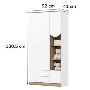 O Guarda Roupa conta com portas com dobradiças metálicas, gavetas com corrediças telescópicas, puxadores em ABS, prateleiras internas, cabideiro em alumínio e prateleiras decorativas laterais. NÃO ACOMPANHA COLCHÃO E DECORAÇÕES. Produto entregue em 02 volumes.