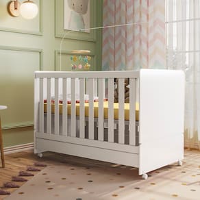 Características: Estrutura em MDP/MDF Pintura UV Grades Fixas em MDF Possui duas regulagens de altura Transforma em mini cama Acompanha kit rodízios Colchão indicado 130x70 NÃO ACOMPANHA COLCHÃO.
