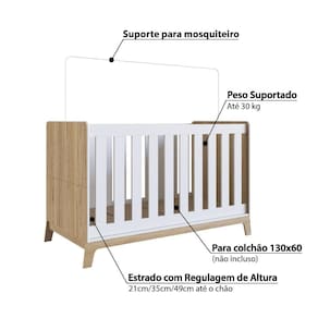 Berço Mini Cama Favo de Mel com Regulagem de Altura - Natural/Branco