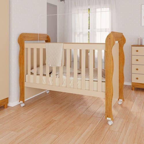 Quer acompanhar o crescimento do seu baby, sem ter que trocar o local do soninho dele a cada fase? O Berço Mini Cama Mirelle Amadeirado-Rústico é perfeito para acompanhar o crescimento dele, e vira uma mini cama, possuindo um design exclusivo e elegante, com um toque de charme que só a Carolina Baby garante, além ser super prático, com estrutura super-resistente, com cabeceiras fabricadas em alta resistência mecânica, superfície e bordas lisas e arredondadas, com distância máxima entre ripas de 6cm, acabamento por camadas de verniz foto curado de composição atóxica, o estrado é feito MDF de 6mm. Montado, ele tem 116,2cm de altura x 143cm de largura x 79,5cm de comprimento, e utiliza colchão de 70cm x 130cm (Não incluso. Dá uma olhadinha nos colchões que temos disponíveis). Montagem não inclusa, também. Garantia de 90 dias por defeito de fabricação. Acabamento: Verniz Acabamento dos Pés: Verniz Acompanha Cama Auxiliar: Não Acompanha Dossel: Não Acompanha Móbile: Não Acompanha Suporte para Mosquiteiro: Não Altura: 115 cm Altura do Estrado até o Chão: 5 cm Altura dos Pés: 5 cm Ambiente Principal: Quarto de Bebê Certificado: 009413/2022 codigo_ean: 7900288094735 Complexidade da Montagem: Alta: deve ser montado por um montador especializado Cor: Off White/Bétula Cor do Produto: Off White/Betula Escala de Brilho: Fosco Espaço Entre as Barras das Grades: 6 cm Estilo: Moderno Estrado com Regulagem de Altura: Sim Estrado Regulável em Quantas Posições: 02 Itens Inclusos: 1 Berço + Kit ferragens + Manual de montagem Largura: 154 cm Linha ou Coleção: Mirelle Manual de Montagem e Instalação: https://product-hub-prd.madeiramadeira.com.br/981791/documents/1ade6ea5-0b3e-45f4-bb1f-28ab6fe8168fd0729264a235f0516381181262.pdf Marca: Carolina Baby Material da Grade: MDF Material do Estrado: MDF Material dos Pés: Polipropileno Material Principal: MDF Montagem Flex: Sim. O Berço pode ser transformado em Mini Cama. Multifunção Flex: Não Necessita Montagem: Sim Opções de Altura do Estrado: 60cm e 30cm Origem do Produto: Nacional Permite a Utilização de Cama Auxiliar: Sim Peso: 37 kg Pintura Atóxica: Sim Portátil: Não Possui Gavetas: Não Possui Pés: 04 Possui Portas: Não Possui Prateleiras: Não Profundidade: 78 cm Recomendações de Uso, Manutenção e Limpeza: Limpar somente com pano macio e seco, não colocar diretamente em incidência da luz solar, não colocar em lugar úmido. Rodízio com Trava: Sim Sapatas Niveladoras: Não Sistema Anti-Refluxo: Não Sistema de Montagem: Cavilhas,Parafusos Suporta Até (kg): 50 kg Tamanho do Colchão Indicado (L x C): 197 x 86 x 102 cm Tipo de Berço: Berço Mini Cama Tipo de Estrado: Removível Tipo de Grade: Fixa
