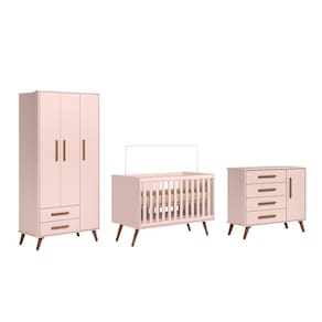 Berço Mini Cama + Guarda Roupa Infantil 3 Portas + Comoda Sapateira Retro - Rosa