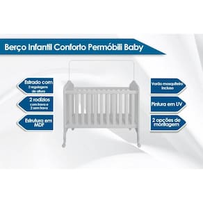 Berço Infantil Conforto 2 em 1 Nature/Branco - Permóbili Baby