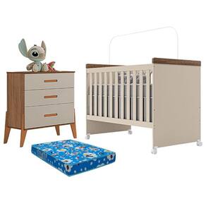 Berço Mini Cama Lívia e Cômoda Gaveteiro Emilly Off White Carvalho com Colchão Ortobom - Canaã