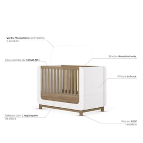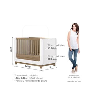 - Pintura Atóxica. Acabamento: Pintura UV Acompanha Cama Auxiliar: Não Acompanha Móbile: Não Acompanha Suporte para Mosquiteiro: Sim - Sem Véu Altura: 102 cm Altura do Estrado até o Chão: 30 cm Altura dos Pés: 5 cm Ambiente Principal: Quarto de Bebê Berço 3 em 1: Não Certificado: 002 747/2024 codigo_ean: 7900288272003 Complexidade da Montagem: Média: pode ser montado por mais de uma pessoa e/ou necessite de maior conhecimento para montagem Cor: Branco/Jequitibá Cor do Produto: Branco/Jequitibá Escala de Brilho: Fosco Estilo: Moderno Estrado com Regulagem de Altura: Sim Estrado Regulável em Quantas Posições: 02 Itens Inclusos: 1 Berço, Kit Ferragens e Manual de Montagem Largura: 146 cm Linha ou Coleção: Sophia Manual de Montagem e Instalação: https://product-hub-prd.madeiramadeira.com.br/128461480/documents/7e4bfedd-7d5c-4695-9f9d-87a53e04fb713246646326617591622543998.pdf Marca: Espresso Móveis Material da Grade: MDF Material do Estrado: MDF/MDP Material dos Pés: MDF Material Principal: MDF/MDP Multifunção Flex: Não Necessita Montagem: Sim Opções de Altura do Estrado: 2 Origem do Produto: Nacional Permite a Utilização de Cama Auxiliar: Não Peso: 44 kg Pintura Atóxica: Sim Portátil: Não Possui Gavetas: Não Possui Pés: 04 Possui Portas: Não Possui Prateleiras: Não Profundidade: 77,5 cm Recomendações de Uso, Manutenção e Limpeza: Para limpeza de seu móvel, use uma flanela limpa e seca. Não utilize produtos químicos que possam danificar o produto. Sapatas Niveladoras: Não Sistema Anti-Refluxo: Não Sistema de Montagem: Parafusos e Cavilhas Suporta Até (kg): 25 kg Tamanho do Colchão Indicado (L x C): 130 x 70cm Tipo de Berço: Berço Mini Cama Tipo de Estrado: Removível Tipo de Grade: Fixa